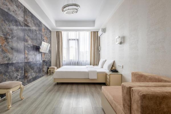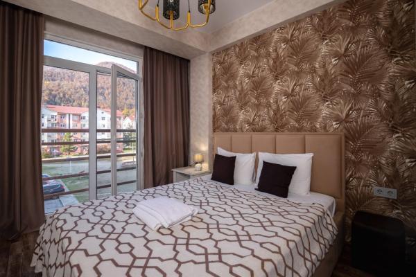 Уютные номера со всеми удобствами (кондиционер, холодильник, с/у, ТВ - LSD, кровати комфорт-класса, сейф, телефон), балкон, великолепный пейзаж. Столовая, бар, прачечная. Номерной фонд из 4-х этажей находится над цокольным этажом, где расположены столовая, ресепшен и сауна. Просторный озеленённый двор с банановыми пальмами. Сад с беседками, мангал. Во дворе присутствуют невысокие ступеньки. Организация экскурсий, трансфер.