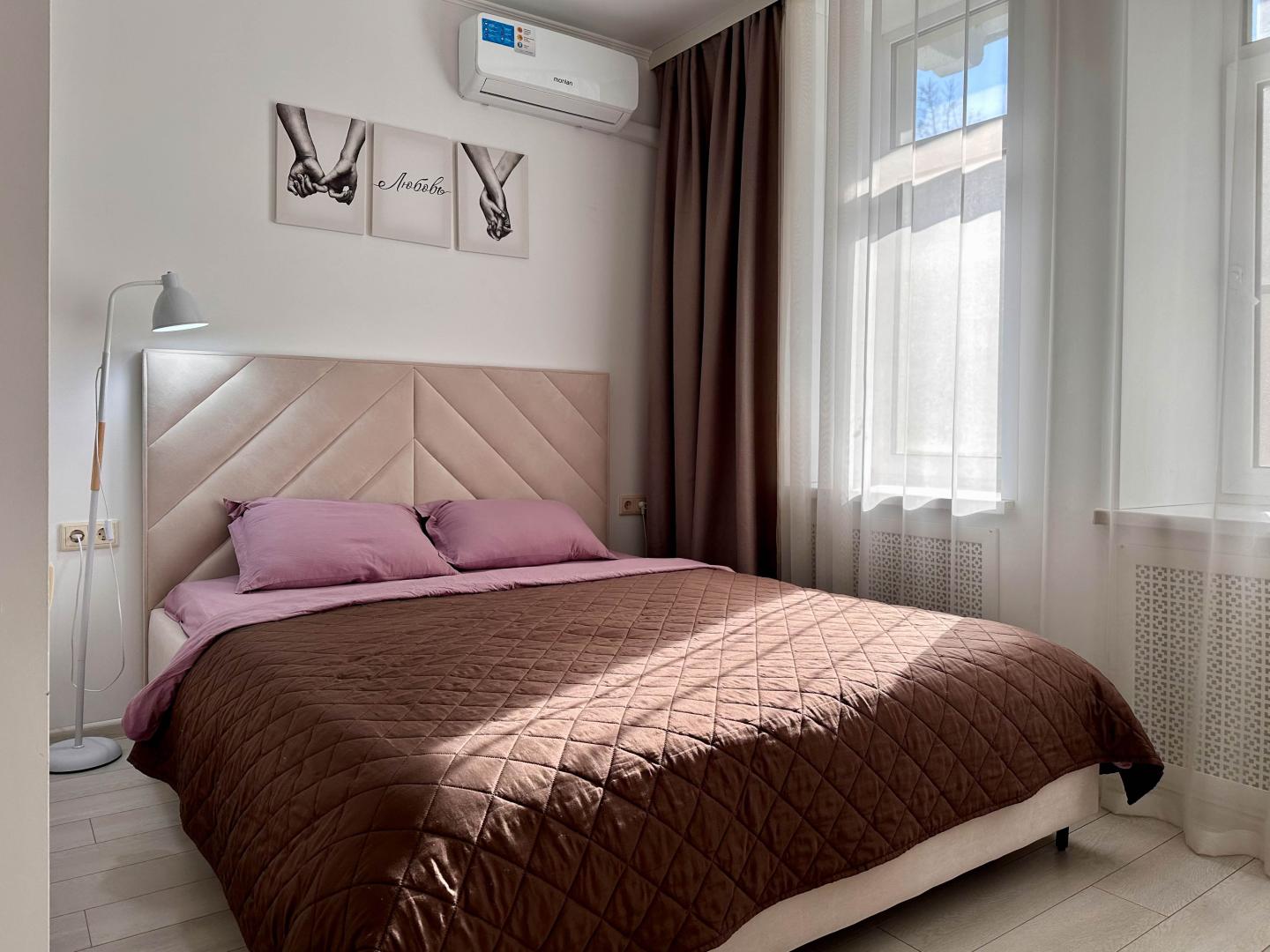 ✨ Просторная и стильная квартира: гостиная с ТВ и кондиционером, спальня с рабочей зоной, кухня со всем необходимым, душевая и отдельный туалет.