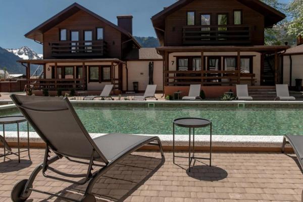 Отель расположен в самом сердце Архыза, охраняемая территория с домиками типа Шале и номерами в главном корпусе, также есть ресторан, парковка, баня, бассейн, мангальная зона, игровая площадка