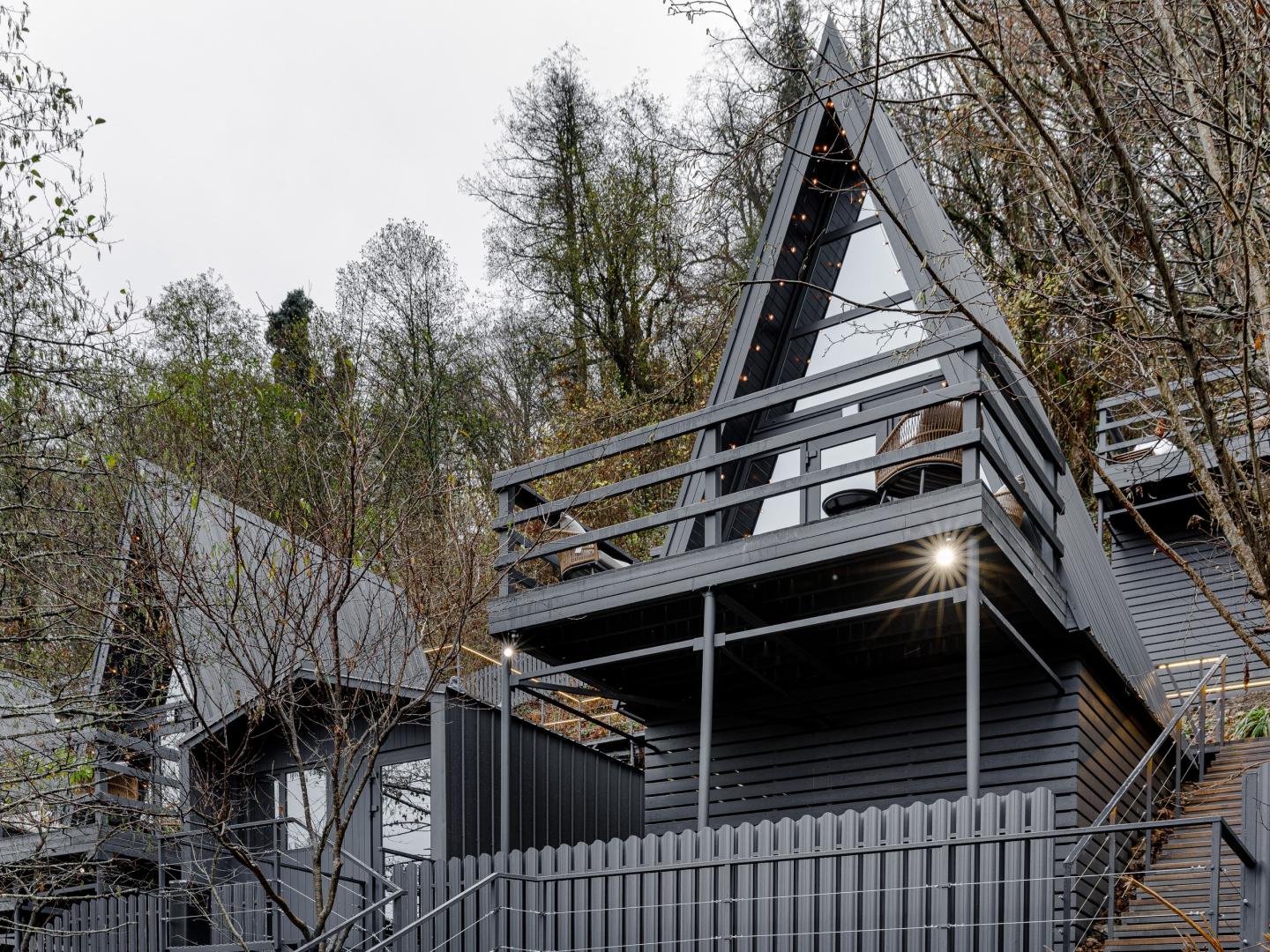 Каждый дом — это современный, функциональный интерьер с акцентом на комфорт. Большие окна дают естественный свет, мебель и текстиль тщательно подобраны для качественного сна и отдыха. А-фрейм комфортно размещает компанию до 4-х гостей.