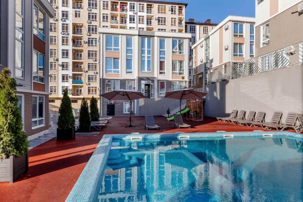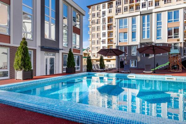 3 Бассейна (взрослый + детский с подогревом), а также теплый бассейн зимой на террасе, сауна, WI-FI. Детская площадка (+ детский игровой и спортивный комплекс), теннисный стол. Детская анимация + шоу-программы.