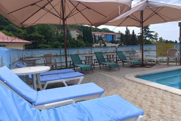 Уютные номера со всеми удобствами (кондиционер, холодильник, с/у, ТВ - LSD, кровати комфорт-класса, сейф, телефон), балкон, великолепный пейзаж. Столовая, бар, прачечная. Номерной фонд из 4-х этажей находится над цокольным этажом, где расположены столовая, ресепшен и сауна. Просторный озеленённый двор с банановыми пальмами. Сад с беседками, мангал. Во дворе присутствуют невысокие ступеньки. Организация экскурсий, трансфер.